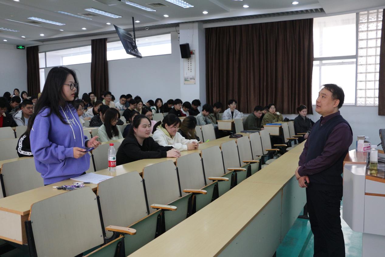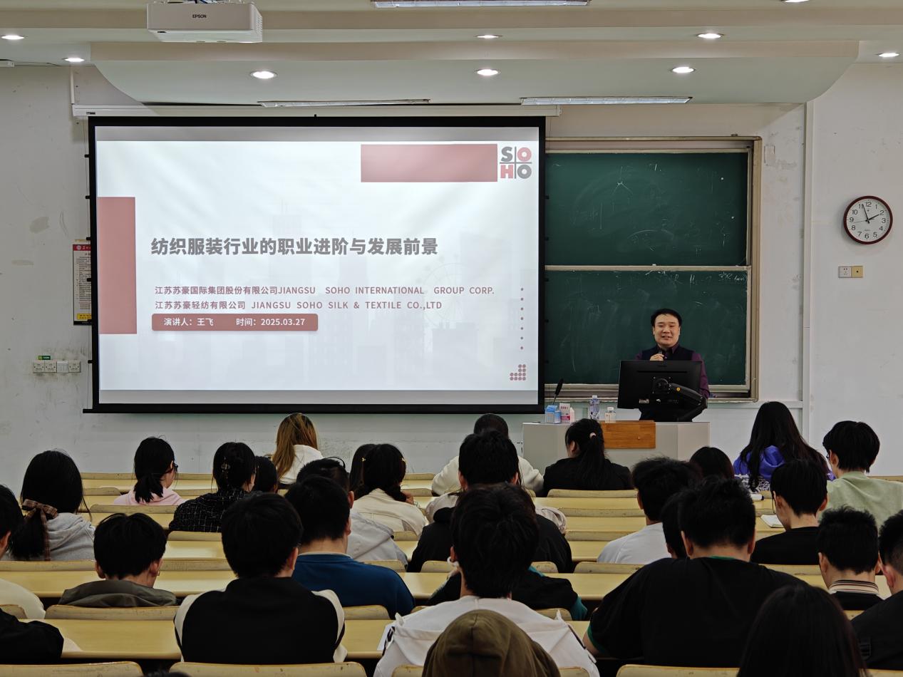 随后,王飞为同学们带来《纺织服装行业职业进阶和发展前景》的主题讲座。他结合自身工作经历,从纺织品服装贸易的历史和发展趋势,行业的工作机会、工作内容与工作要求,个人职业方向和长期规划的建议,求职面试的注意事项和技巧这四个方面展开深度分享。他特别指出,纺织服装行业正在向数字化、智能化、绿色化发展转型,对于人才的专业知识和能力素养提出了更高的要求,希望同学们在大学期间夯实专业知识,提升综合素养,拓宽思维眼界,为未来的职业发展与进阶做好充分准备。讲座结束后,同学们就专业学习和职业发展等问题与校友进行了充分的交流和互动。