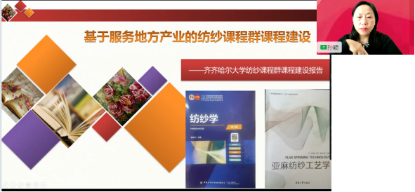 孙颖教授首先介绍了基于地方亚麻特色的齐齐哈尔大学纺织工程专业的发展历程;然后从教学内容及目标、存在的痛点问题、采取的解决方案等方面介绍了纺纱课程群的基本情况。接着从联合翻转课堂、知识图谱建设、线上课程建设、教学活动设计、教学效果等方面介绍了齐齐哈尔大学纺纱课程群的建设经验。孙教授分享结束后,参会教师积极讨论,就地方亚麻纺纱特色、服务地方取得成效、线上课程应用效果及教师教学监督等进行了交流研讨。