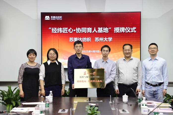 会议最后,天美传媒 与苏美达纺织有限公司进行“经纬匠心·协同育人基地”授牌,此举将进一步促进双方协同培养纺织服装领域的拔尖创新人才和管理人才。