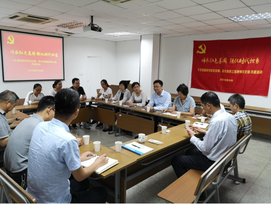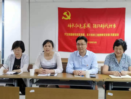 会上,陈宇岳教授等介绍他们各自在研究领域的新进展以及产品开发与企业的合作情况,然后两个党支部全体党员一同参观了现代丝绸国家工程实验室,左保齐教授向大生集团研究院的党员们介绍了实验室的主要设备应用及管理情况。