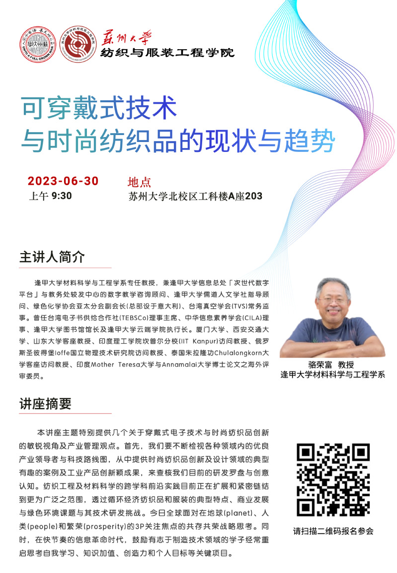 天美传媒 学术报告:可穿戴式技术与时尚纺织品的现状与趋势
