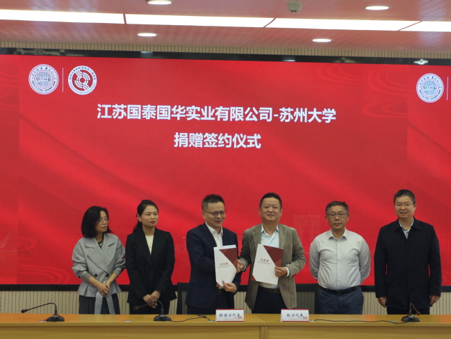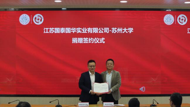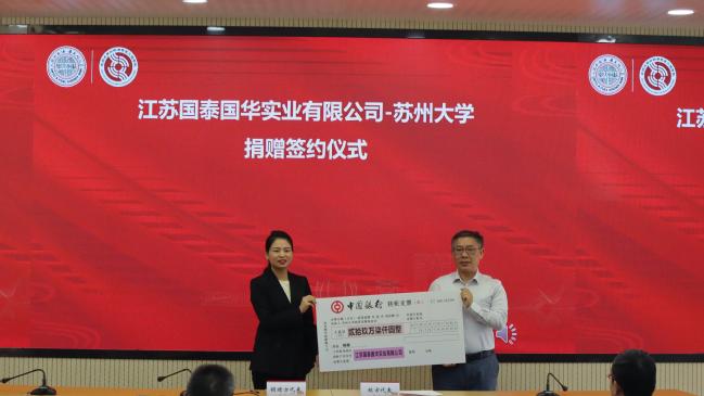 随后,举行捐赠仪式,张斌与陆岸签署了捐赠协议,孙凌向张克勤赠送支票,陆岸向张斌颁发了捐赠证书。为支持纺织专业学科建设,国华公司将在天美传媒 设立“国泰国华英才奖”和“国泰国华卓越管理奖”,用于表彰德智体美劳全面发展的优秀学子和在人才培养工作中贡献突出的优秀教师。