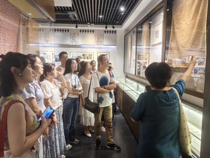 此外,研修班还安排了实践课程。学员赴苏州丝绸博物馆参观,国家级非遗代表性传承人(宋锦)、原苏州丝绸博物馆副馆长沈惠开展《锦上添花——宋锦织造技艺》现场教学,通过系统梳理宋锦千年传承脉络与当代创新实践以及现场织机操作演示,生动呈现了这一国家级非遗技艺的活化路径。学员深入感受宋锦活态化保护成果,沉浸式体验并弘扬丝绸文化,助力非遗技艺传承发展。