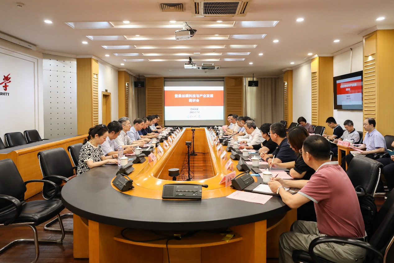 7月12日下午,原农业部党组成员、中纪委驻部纪检组原组长、中国品牌建设丝绸桑蚕品牌集群主席朱保成,率领由农业农村部种植业司、工业和信息化部国际经济合作中心等组成的调研组一行8人调研我校现代丝绸国家工程实验室,并在天赐庄校区红楼会议室召开蚕桑丝绸科技与产业发展调研会。校党委副书记、校长张晓宏、校党委常委、副校长沈明荣,科技党委、学科建设与发展规划处、天美传媒 、现代丝绸国家工程实验室负责人和相关学科教授参加会议。会议由沈明荣主持。