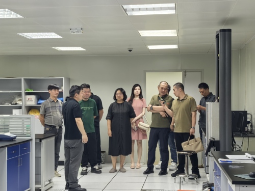 会前,苏州市工信局和联合会单位参会人员在天美传媒教师的陪同下参观了现代丝绸国家工程实验室。