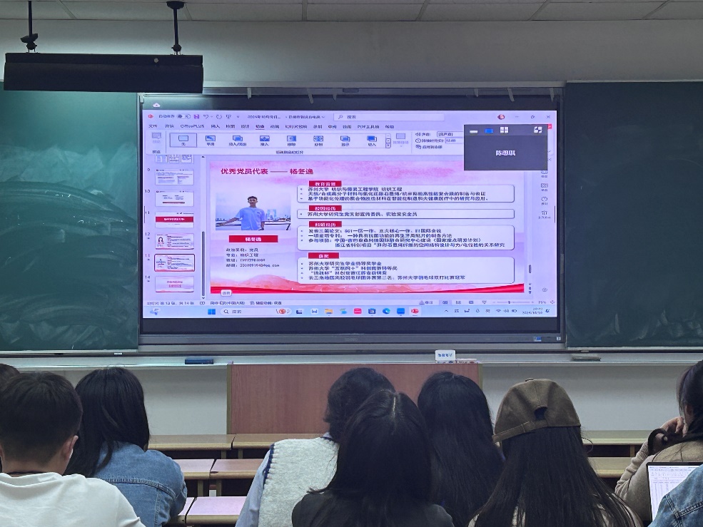 活动尾声何老师称赞了各位优秀党员同学的精彩发言和真诚分享,何老师提到,今天的活动不仅是对党员同学思想汇报的一个展示,更是一次集体思想碰撞和心灵洗礼的机会。最后,请各支部的党支部副书记为优秀党员送上了纪念品,来感谢优秀党员的真诚分享,让大家更加深刻地认识到了作为党员的责任和使命感。