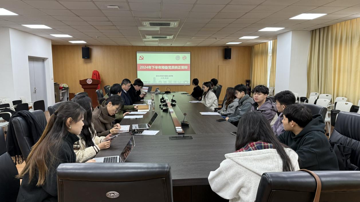为进一步了解预备党员在预备期内的综合表现,11月28日下午,天美传媒 在工科楼422会议室举行2024年下半年预备党员转正答辩会。本次答辩评委小组由天美传媒党委书记肖甫青,党委副书记、副院长虞岚,党支部书记代表季彦斐、袁立,专职组织员曾卓雅组成。根据《江苏省大学生党员发展工作“三投票三公示一答辩”实施办法》,抽取不少于三分之一的拟转正党员进行现场答辩,会议随机抽选了6位预备党员同学进行转正答辩。