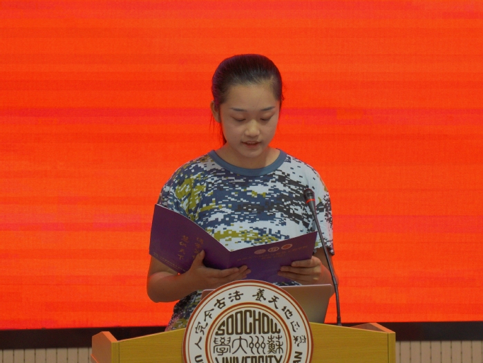 2025级纺织工程专业学生濮含卿同学代表全体新生发言。她表达了对于加入纺织服装与工程天美传媒这个大家庭的喜悦,以及对美好大学生活的憧憬。同时,她从角色转换、修身立德、博学创新三个角度出发,提出了自己关于大学生活的想法,号召同学们秉持“诚谨勤朴,经纶天下”的院训,在苏大的沃土上,用勤奋浇灌梦想,用担当书写青春,不负时代重托