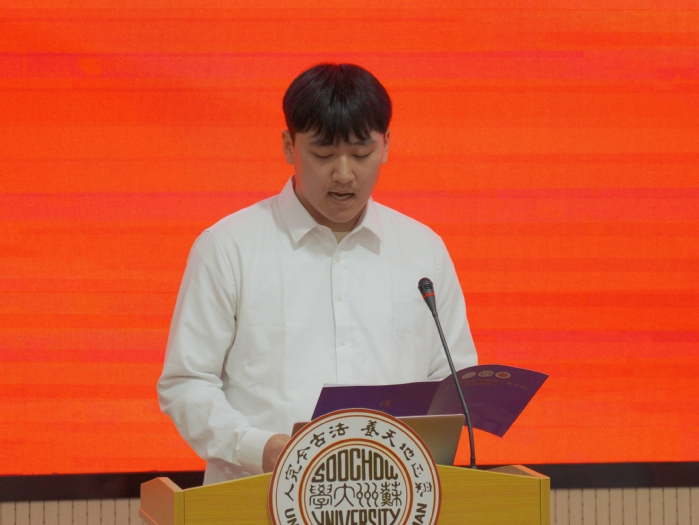 教师代表、博士生导师李若欣教授对2025级新生的到来表示热烈欢迎。他勉励新生既要筑牢专业知识根基,更要跳出书本、扎根实践,以饱满的姿态迎接大学生活,以“勤思考、勇发问”的态度探索学科边界,在苏大的平台上绽放青春光彩,不负韶华时光。
