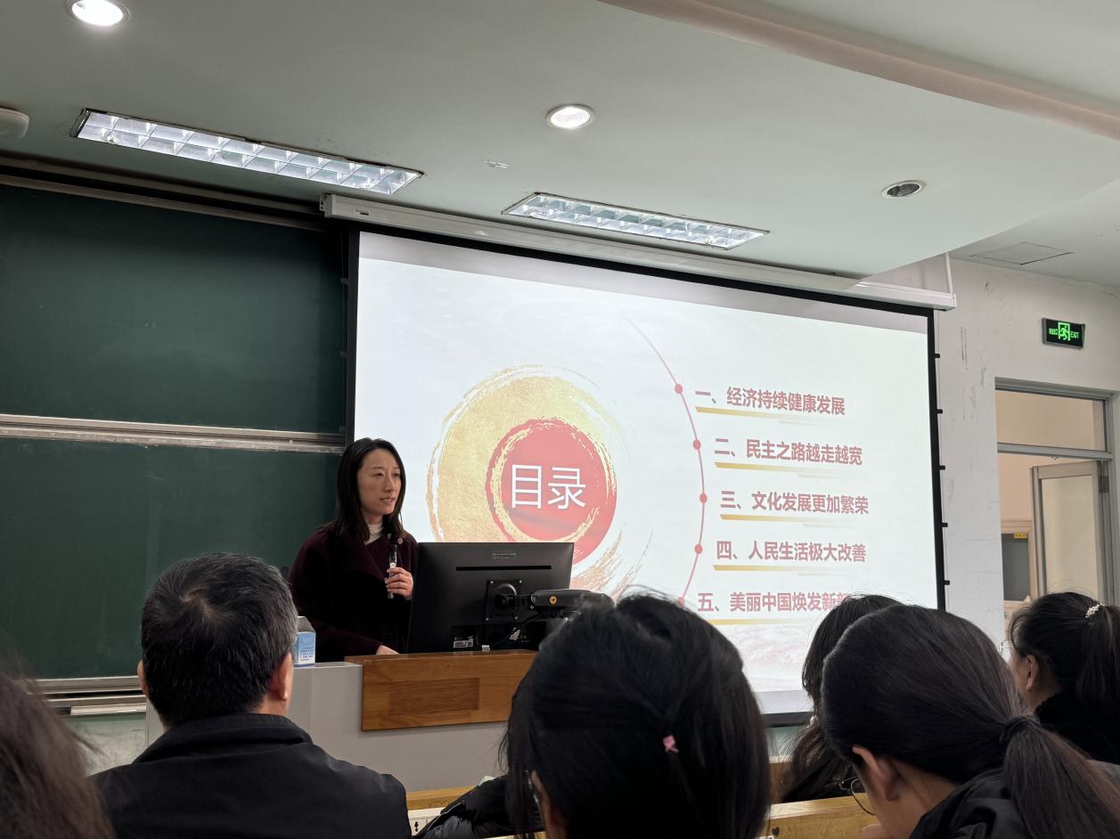 洪晔从“经济持续健康发展”“民主之路越走越宽”“文化发展更加繁荣”“人民生活极大改善”“美丽中国焕发新颜”五个方面详细介绍了新中国成立75年来中国共产党带领全国人民攻坚克难取得的巨大成就。希望同学们充分利用学校提供的学习资源和平台,努力学习专业知识和技能,不畏风险与挑战,在强国有我的奋斗征程中,展现新时代青年的担当和作为。