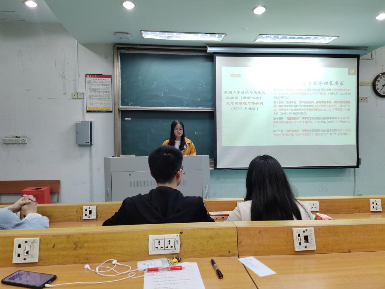 讲座伊始,事务中心乐嘉灵同学向大家介绍了“志愿者与志愿精神”,他表示当代青年大学生应该积极传承并发扬“奉献、友爱、互助、进步”的志愿者精神,为身边、为社会的美好建设贡献出自己的力量。随后志愿服务部、学生事务部、勤工助学部的负责人分别针对“事务中心志愿活动”、“参加志愿活动注意事项”、“志愿时长认定要求”、“志愿时长与评奖评优”等四部分内容进行详细介绍,他们鼓励同学们积极参与书院各项志愿活动,并及时、高效地完成志愿服务工作认定。在讲解过程中,穿插了有奖问答和幸运抽奖的互动环节,同学们积极地参与到讲座中来,现场气氛活跃,宣传效果良好。