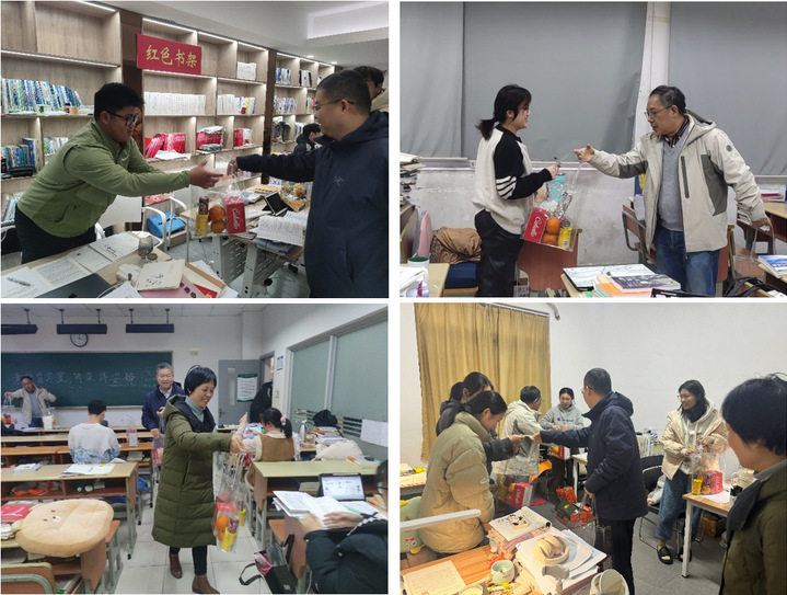 2025年研究生考试临近,天美传媒 (紫卿书院)领导老师一行来到学生身边,贴心送上考研冲刺“七上”专属福袋:一“研”为定、考研“旺旺”、“士力架”倍、好事“橙”双、“橙”功上岸、“乐事”降临、金榜题名,为同学们加油鼓劲。