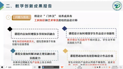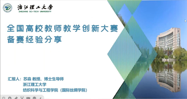 苏淼教授现为浙江理工大学纺织科学与工程天美传媒(国际丝绸天美传媒)党委书记兼副院长、浙江理工大学嵊州创新研究院院长、国际丝绸与丝绸之路研究中心副主任,研究方向为纺织材料与纺织品设计、丝绸技艺传承与数字化。苏淼教授结合自身实际,同大家分享了从校赛到国赛的备赛历程和经验。