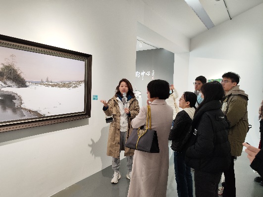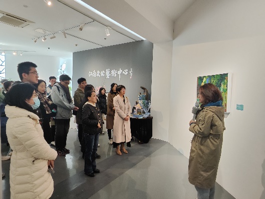 首先,党员们来到尹山湖美术馆,在讲解员的细心讲解下,党员们参观了“诗意江南——中国油画作品展”,领略艺术作品中的匠人匠心,通过美术作品的鉴赏,实现跨学科的精神文化交流。艺术家们通过画笔歌颂中华人民共和国成立以来的辉煌成就,展现了广大人民为实现中华民族伟大复兴的中国梦的信心和决心。党员们站在一幅幅优美的油画作品前驻足凝视,切身感受新时代下祖国山河的人文之美,领悟不同画作传达出的精神内涵,更深切的意识到作为一名党员同志身上所肩负的责任与使命。