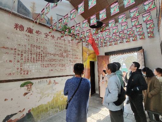 随后,党员同志们来到平望古镇,沉浸式体验了京杭大集打造的景社共融的运河文化街,参观了群乐旅社旧址、司前街古巷、平行旅程粮仓展空间,在运河边上寻觅粮仓旧址,体悟到粮仓的世纪变革,其中二号粮仓出口处网红新农村长漾村的展示图,给了大家深刻的印象,使一行的党员同志们深刻领悟到习近平总书记强调的在传承中创新发展的重要意义。