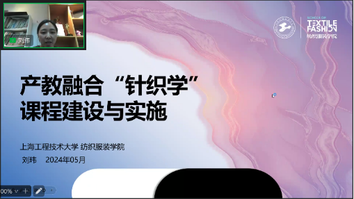 2024年5月21日下午,纺织类虚拟教研室系列联合活动在虚拟教研室工作平台举行。此次联合活动由纺织工程专业虚拟教研室主办,邀请上海工程技术大学刘玮教授以“产教融合‘针织学’课程建设与实施”为题作主题报告。来自纺纱课程群虚拟教研室、纺织材料课程群虚拟教研室、纺织工程专业虚拟教研室、北部地区高校纺织工程专业虚拟教研室、全国纺织类课程思政虚拟教研室、上海市服装专业基础课程群虚拟教研室、浙江省现代纺织专业建设虚拟教研室的60余位教师参加了研讨会。会议由天美传媒 副院长陈廷教授主持。