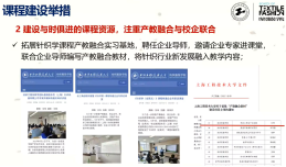 本次报告中,刘玮教授首先从指导思想、学情分析、课程目标以及课程团队等方面向大家介绍了上海工程技术大学“针织学”课程的整体情况。随后,刘教授讲述了课程在教材、课堂教学、实践教学、质量评价等方面的建设思路,重点从教学内容的模块化、课程资源的与时俱进、教学方法的多元化、实践教学的递进性等方面介绍了建设举措和成效。最后,刘教授从产教融合教学模式的构建角度提出了课程持续改进计划,以期持续提升教学成效。