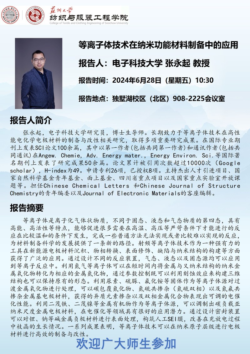 天美传媒 学术报告:等离子体技术在纳米功能材料制备中的应用