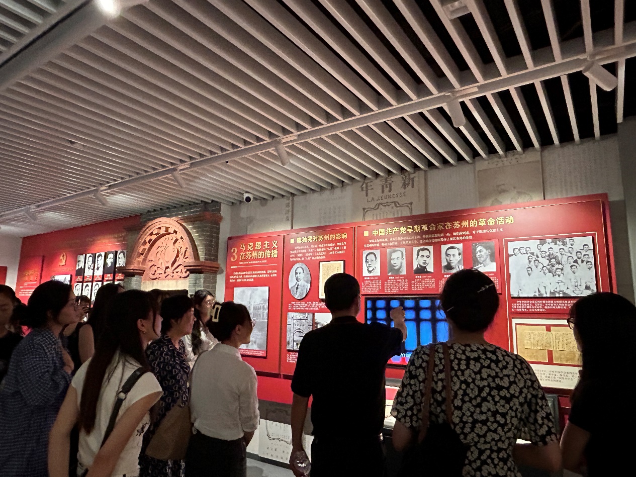 苏州革命博物馆是省爱国主义教育基地、省党史教育基地、省社会科学普及示范基地。党员同志们沿着展馆,跟随讲解员的脚步,慢慢了解到了陈列的每一件文物背后的抗战故事,每个英雄都有属于自己的历史印记,每件文物都是历史的见证者,诉说着百年前的中国,山河破碎,烽火四起,但有一群青年人,铁肩担道义,让中华民族重新挺起了背染。