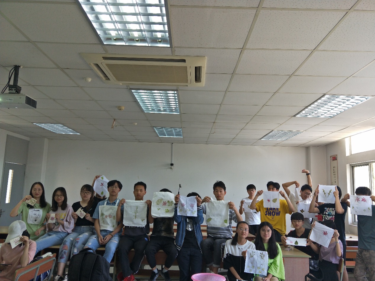 5月24日早晨,北区已经被阳光笼罩,带着用水浸泡过的植物枝叶花朵,17非织造材料与工程班的同学们已经准备好进行他们的五月活动了。