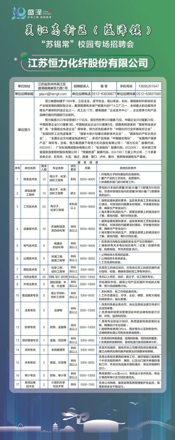 【招聘信息】江苏恒力化纤股份有限公司