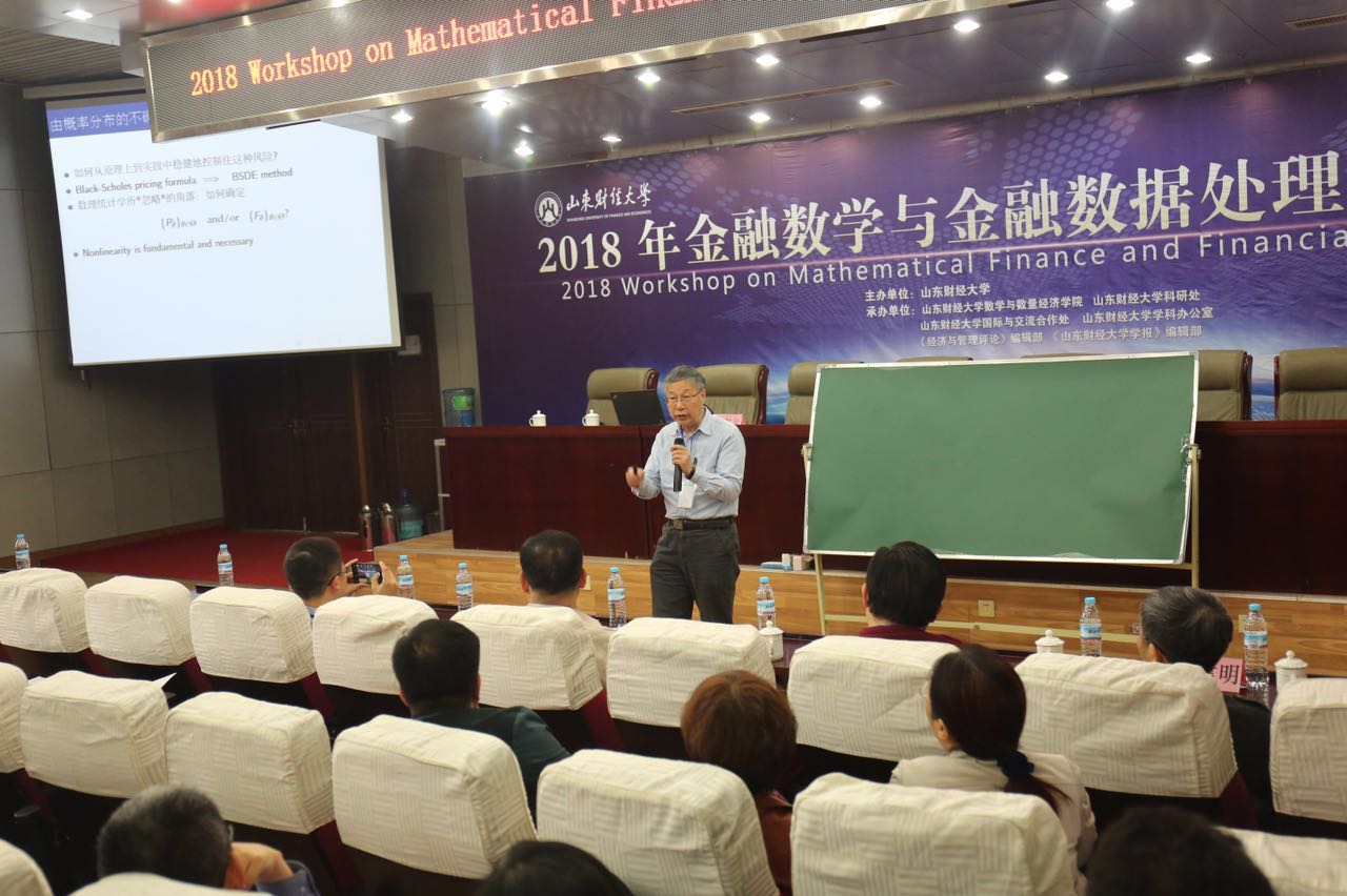 3月31日至4月1日,“2018年金融数学与金融数据处理国际研讨会”在我校舜耕校区举办。来自中国科学院、山东大学、北京大学、复旦大学、同济大学、中国人民大学、中国科技大学、City University of Hong Kong、Loughborough University、Swansea University、University of Macau等国内外近60余所科研院校的代表近200人参加了会议。副校长陈晓兰教授出席研讨会开幕式并致辞。科研处处长张志元教授,数学与数量经济学院、金融学院、保险学院、统计学院、《经济与管理评论》等学校相关部门和学院师生,参加了研讨会。研讨会开幕式由院长安起光教授主持。