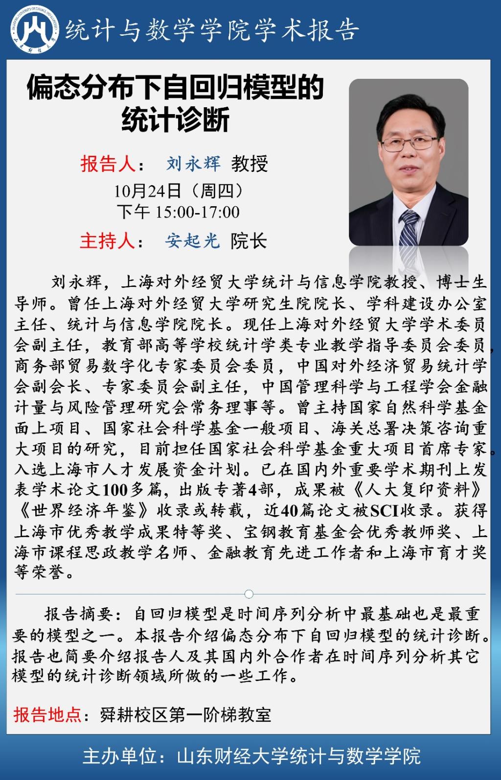 天美传媒 学术报告预告-偏态分布下自回归模型的统计诊断