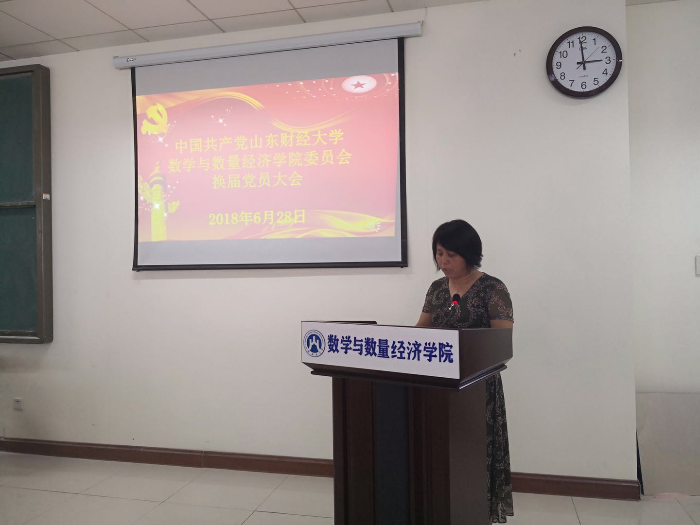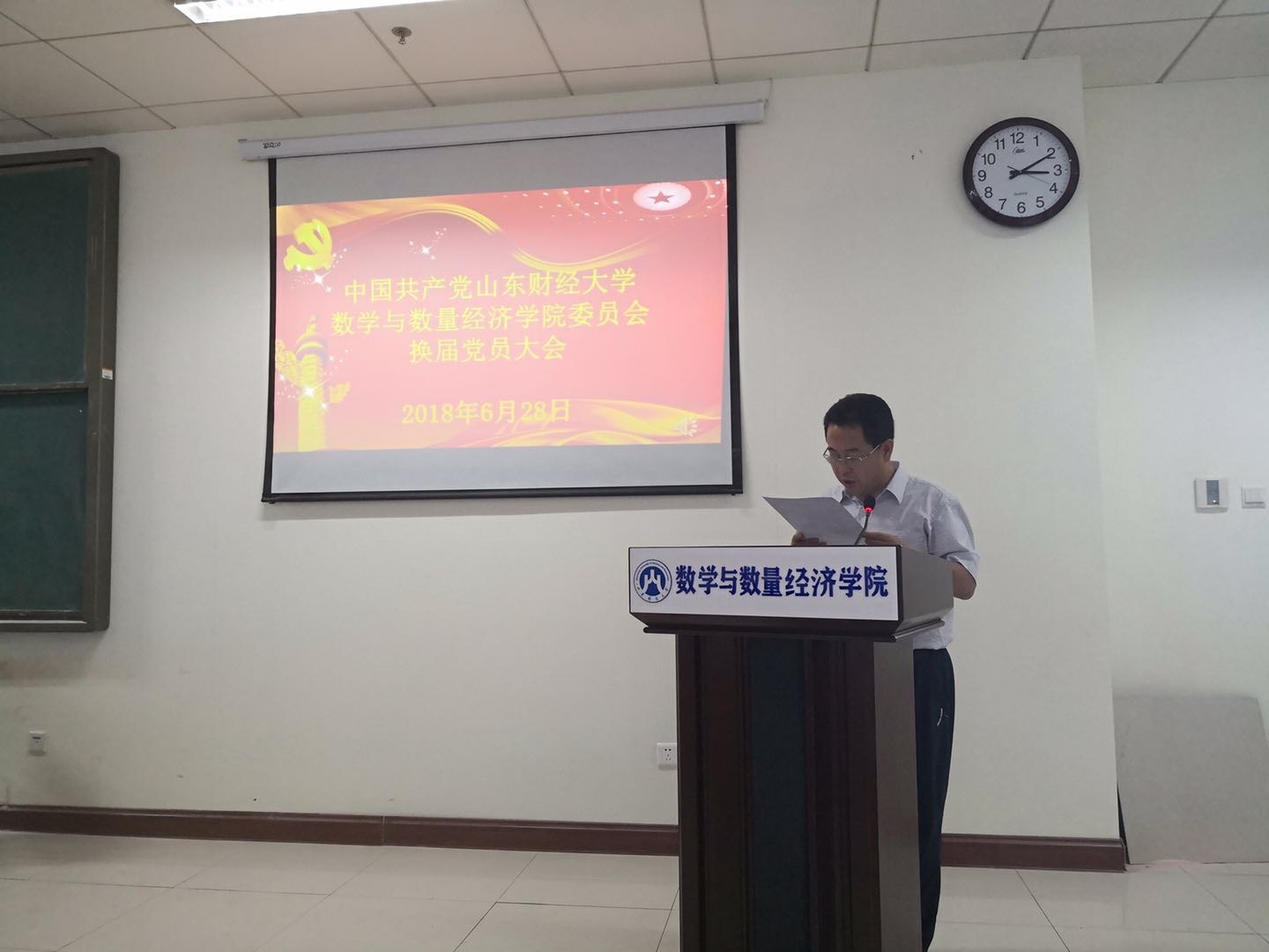 唐磊同志代表本届党委,对数学与数量经济学院近四年工作进行工作汇报。报告以“凝心聚力、开拓创新,为实现学院任期目标不懈努力”为主题,汇报了近四年来所做的工作与取得的成绩。四年来,学院思想建设和组织建设持续加强、学科建设成效显著、教学工作稳固提升、人才培养质量显著提高、科研创新能力明显增强、学生工作不断向前推进,在各个方面均取得了较好的成绩。同时,报告明确了学院未来四年努力的方向,要适应新时代高校的发展规律,圆满完成学校布置的各项工作。承前启后,继往开来,瞄准更高的目标;凝心聚力,开拓创新,描绘更美的图画,为实现学院任期目标不懈努力。
