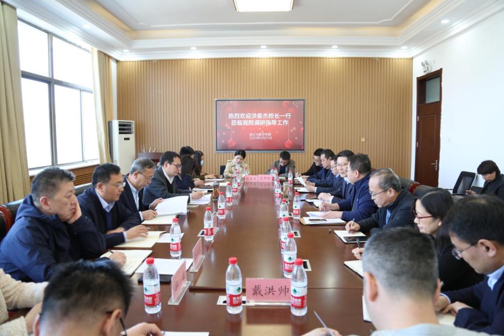 李玉成代表全院师生对洪校长一行莅临学院调研指导工作表示热烈地欢迎并感谢校领导及各部门对学院工作全方位关心和支持。