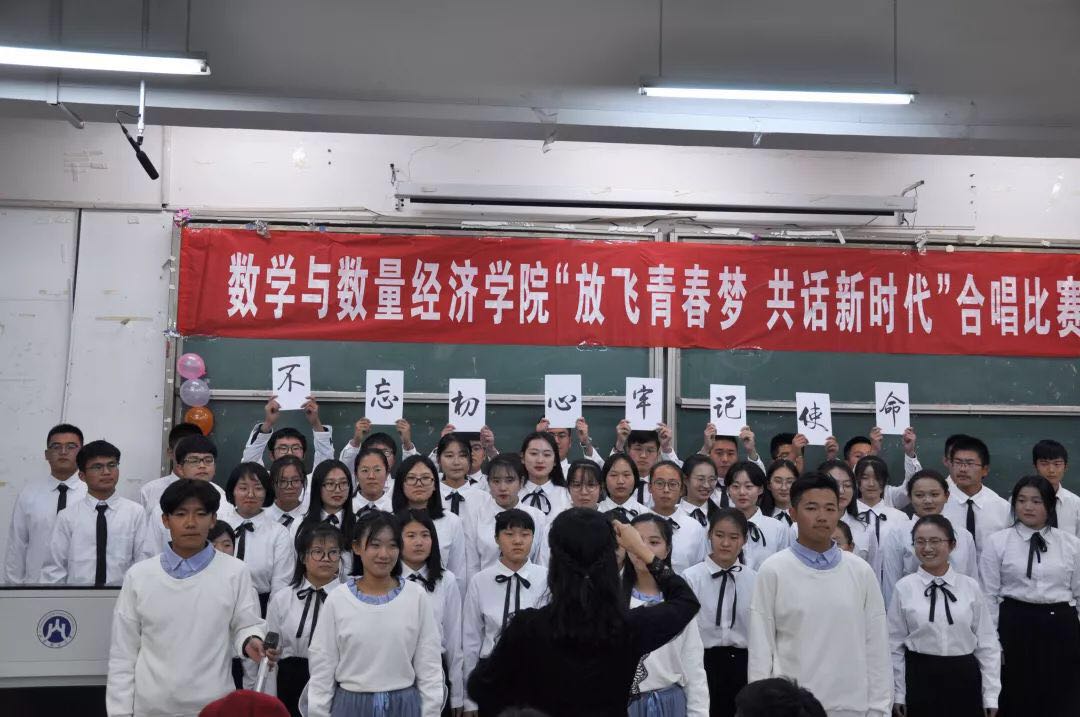 2018年11月24日晚,数学与数量经济学院“放飞青春梦共话新时代” 2018级合唱比赛于圣井校区敏行楼顺利举办。出席本次比赛的嘉宾和评委有:天美传媒 专职组织员张亚萌老师、预科班玛依努尔老师、肖玉宽老师、各学院代表及天美传媒 学生会各部门负责人。