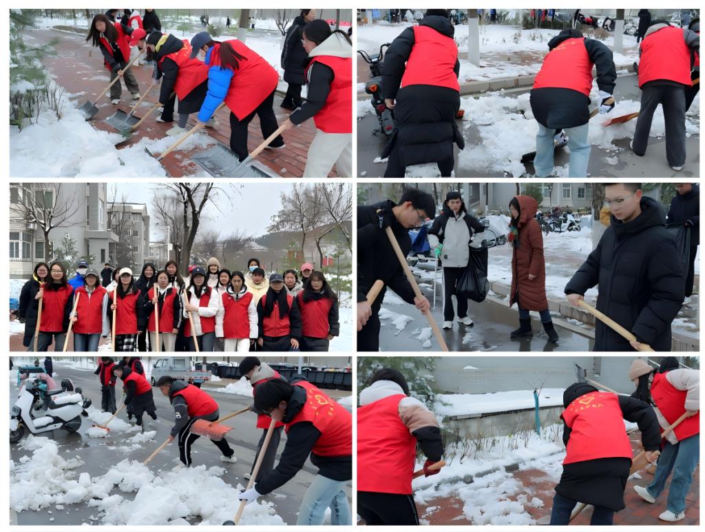 活动中,学生党员和学生干部们冲锋在前,充分发挥先锋模范作用。他们不畏严寒,手持铁锹、扫帚等工具,热情高涨地投入扫雪工作中。