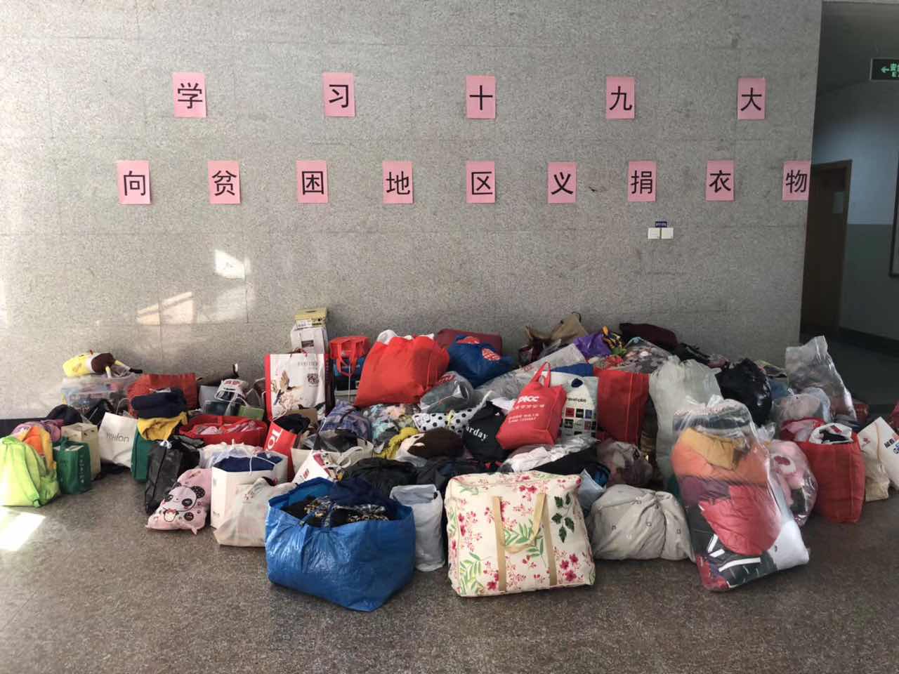 四个小时的募捐活动后,经过初步统计和计算,共有来自校办、科研处、发展规划处、党办、档案馆、图书馆、法学、数学、文学院、金融、艺术、国贸、经济、管科、公外、工商、计算机、财税、保险等二十多家单位的100多位老师参加了募捐,共收集衣物、书籍、鞋子、玩具等939公斤,分成69包(箱),当天下午由德邦物流发往内蒙古。截止作者写稿时,第一批47包(箱)已经抵达内蒙古。