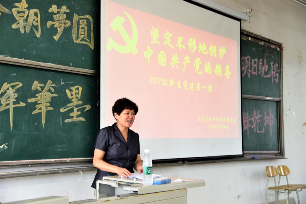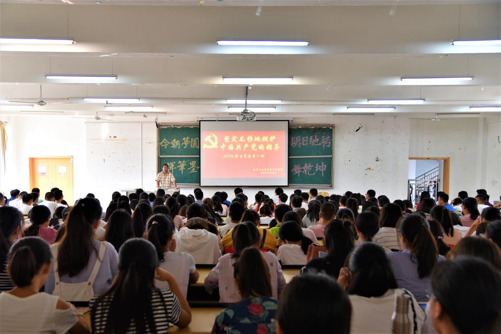 2017年9月14日上午,天美传媒 在敏行楼B5201为2017级新生举办了名为“坚定不移地拥护中国共产党的领导——2017级新生党建教育第一课”的党建专题教育讲座。学院党委书记王建香、党委秘书张亚萌分别为新生进行党课教育。讲座由张亚萌老师主持,2017级全体新生参加。