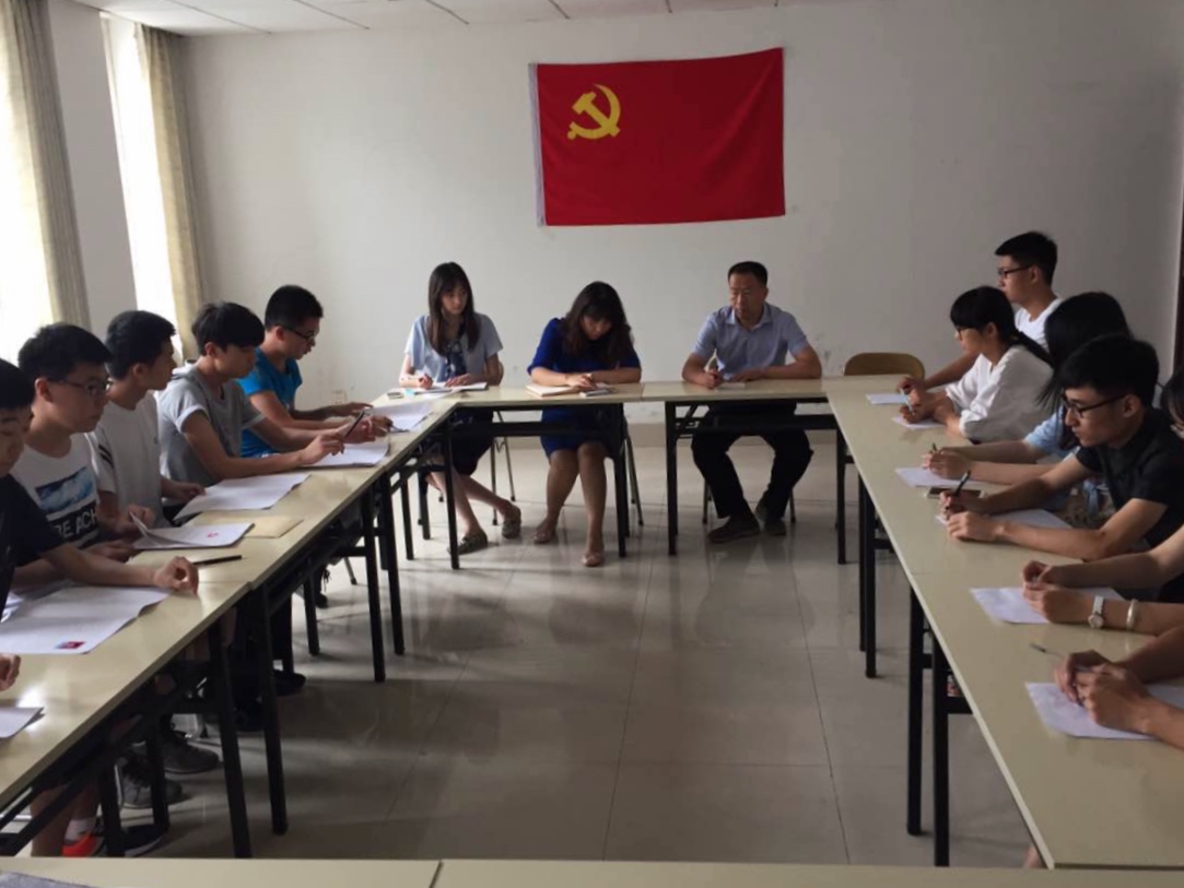 支部大会首先由于帅、徐嘉辰等9名经预审合格的发展对象宣读《中国共产党入党志愿书》,汇报自己对党的认识、入党动机、本人履历、家庭和主要社会关系情况以及需要向党组织说明的其他问题。其次,由入党介绍人逐个介绍发展对象的有关情况,并对其能否入党表明意见。最后经支部大会讨论后,支部内正式党员对本次参与讨论的发展对象进行逐个表决。
