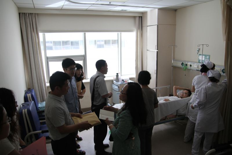 在医院探望期间,赵连幸向吕国昌同学及其亲属转达了学院其他领导及全体同学的亲切问候,询问吕国昌同学近期治疗康复情况,鼓励他安心养病,战胜病魔。随后,赵连幸把募捐的财物交予吕国昌家人,并由学生党员代表向吕国昌同学转达了天美传媒