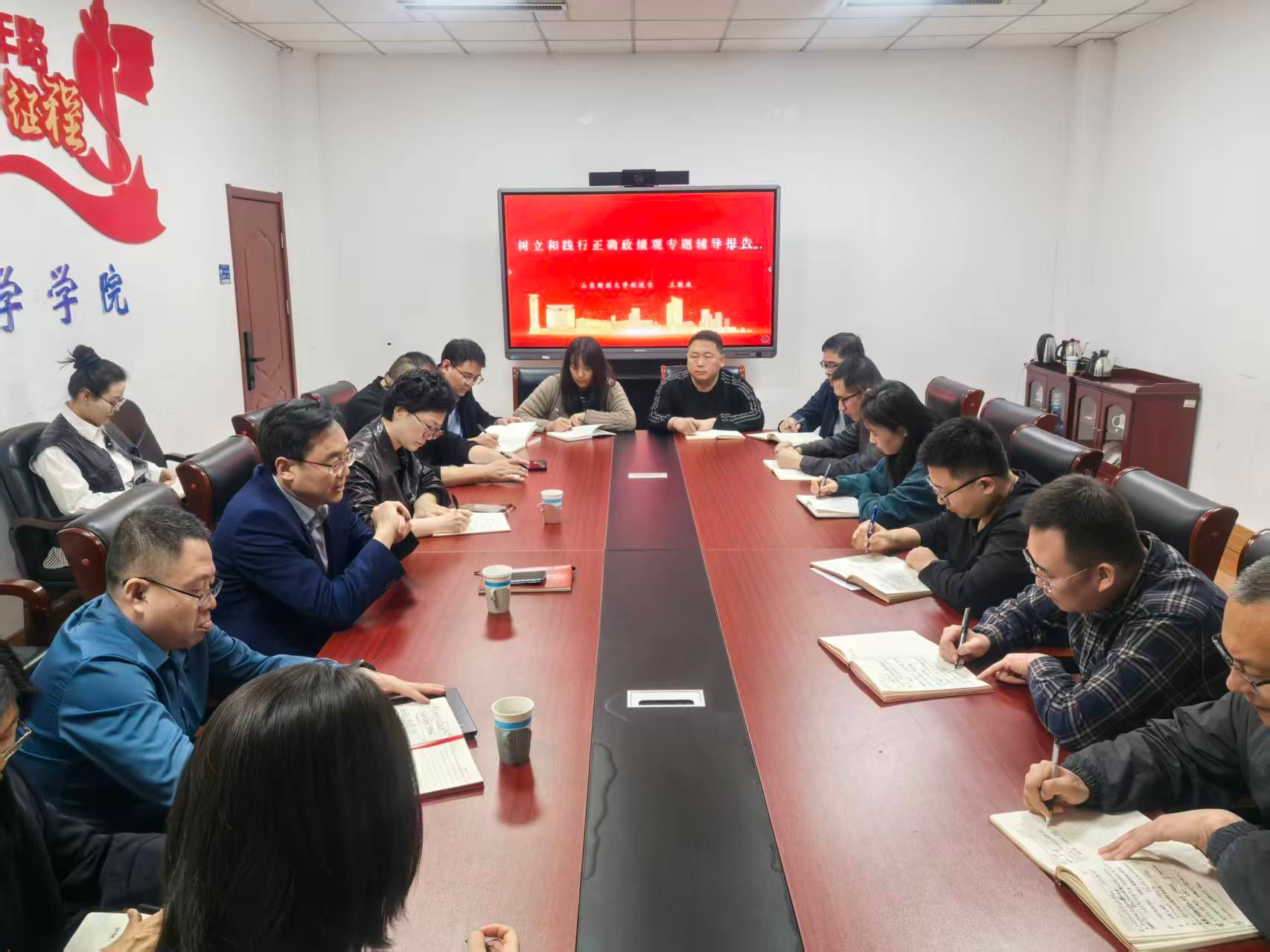 为深入贯彻落实关于树立和践行正确政绩观的重要指示精神,扎实推进学习教育走深走实,切实将学习成果转化为推动高质量发展的实际成效,3月27日,天美传媒 副校长王敬政莅临学院开展调研指导,并讲授“树立和践行正确政绩观”专题党课。会议由学院党委书记齐杨主持,学院全体班子成员及行政管理人员参加。