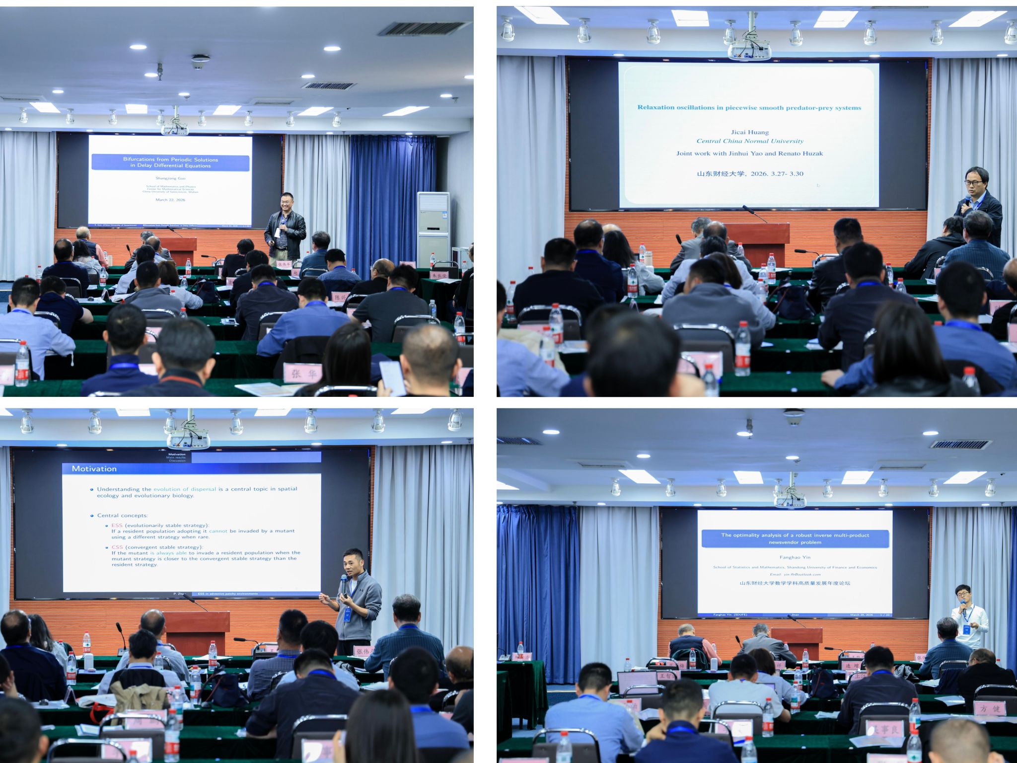广州大学原党委书记、校长庾建设在致辞中结合自身学术经历,指出动力系统与智能体交叉领域的研究具有深远意义,加强该领域基础理论研究对引领原始创新、支撑科技进步具有重要作用,期待与会学者充分利用会议平台深入开展研讨交流、激发思想碰撞,并对天美传媒 近年来在学科建设中取得的突出成绩表示赞赏;山东师范大学数学与统计学院执行院长赵强在致辞中回顾了两校在学科建设方面长期携手并进的历程,表示双方依托各自特色与优势,在人才培养、科研合作、学术交流等方面持续深化协作,为学科发展注入了强劲动力,并承诺学院将全力做好会议服务保障工作,确保会议顺利召开。