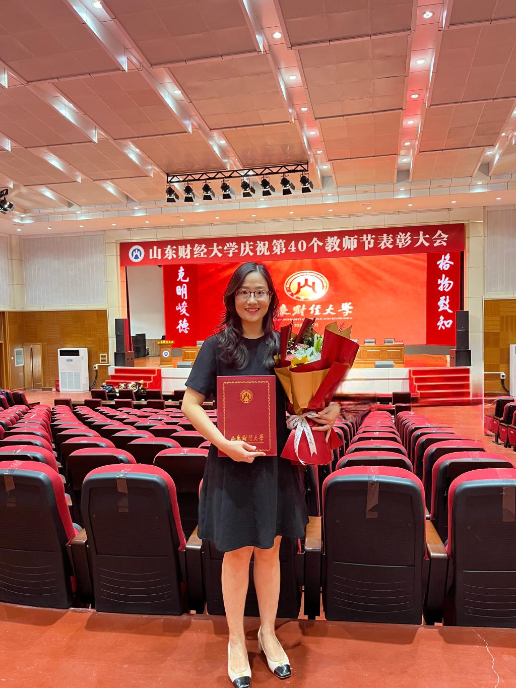 9月10日,学校隆重召开庆祝第40个教师节表彰大会,天美传媒 副院长李娜教授荣获学校首届“十佳教师”称号。会上,校领导为十佳教师颁发荣誉证书并送上鲜花。