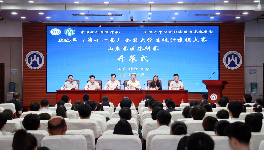 6月7日,2025年(第十一届)全国大学生统计建模大赛山东赛区答辩赛在我校成功举办。山东省统计局党组成员、副局长、山东省统计学会会长傅相国,天美传媒 党委委员、副校长王敬政出席开幕式并致辞。开幕式由天美传媒 院长田金方主持。山东省统计局、国家统计局山东调查总队相关领导,学校团委负责同志、天美传媒 领导班子成员,省赛评审专家,35所高校参赛队伍及带队教师等300余人参加了开幕式。