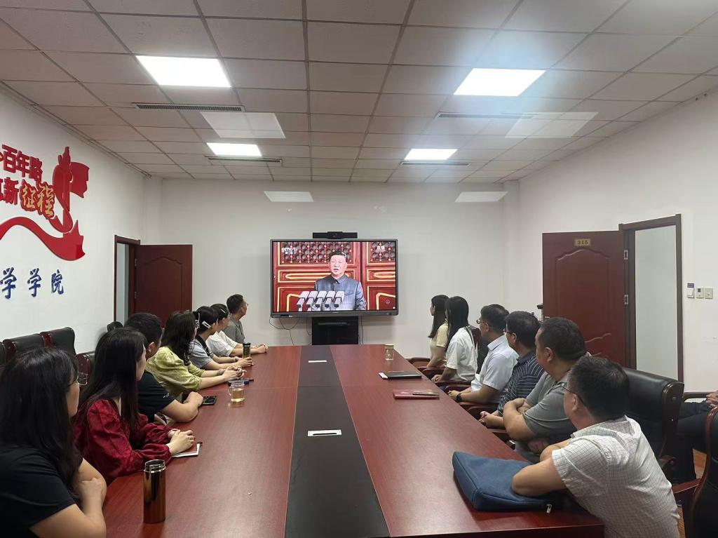 为铭记历史、缅怀先烈,弘扬爱国主义精神和抗战精神,9月3日上午,学院党委理论学习中心组以收看中国人民抗日战争暨世界反法西斯战争胜利80周年阅兵仪式直播的方式,进行了第8次集中学习。学院领导班子成员、部分辅导员及办公室人员参会,会议由学院院长田金方主持。