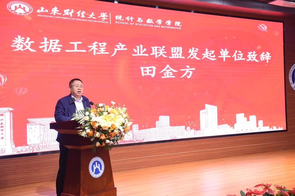 在校友会天美传媒 分会成立大会圆满落幕后,数据工程产业联盟成立大会正式启动。大会由学院副院长郭洪峰主持。天美传媒 院长、数据工程产业联盟发起人田金方上台发言。