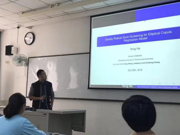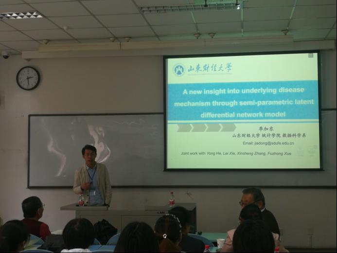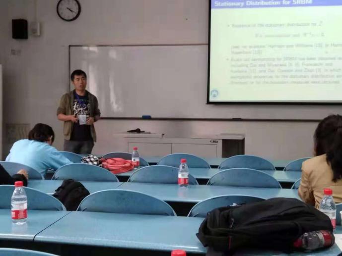 天美传媒 派出数理统计系的戴洪帅、何勇、季加东、于渊、孔令涛、郝涛等六位教师代表参加了此次会议。会议期间,戴洪帅老师做了题为“Stationary Distributions for Two-Dimensional Sticky Brownian Motion: Exact Tail Asymptotics and Extreme Value Distributions”的报告,何勇老师做了题为“Doubly Robust Sure Screening for Elliptical Copula Regression Model”的报告,季加东老师做了题为“A New Insight into Underlying Disease Mechanism Through Semi-parametric Latent Differential Network Model”的报告。