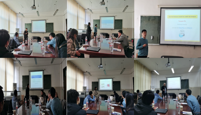 本次会议邀请了优秀青年学者作报告交流。上半场,山东大学经济学院严晓东副教授做了题为“Simultaneous estimation and group pattern recovery for censored liner regression”的专题演讲,主要针对个性化医疗的的应用背景,介绍了一种能够解决个性化医疗问题的统计模型,并结合Buckley-James迭代过程和乘数的交替方向方法对模型进行求解,并证明了该方法具有很好的性质。天美传媒 统计学院季加东副教授演讲了其研究论文“A Machine Learning Method for Identifying Critical Interactions between Gene Pairs in Alzheimer's Disease Prediction”,该论文以阿尔兹海默症为背景,应用一种新的机器学习方法对其进行预测,并与主流的机器学习预测方法进行比较,验证了论文所提出的方法的优越性。山东大学经济学院裴有权副教授以“Survival mixture model for credit risk analysis”为题展示了其近期的研究成果,该成果提出了一种基于生存分析的新统计方法,不仅可以建模是否违约,而且可以预测发生违约的时间,为信用风险问题提供了一种解决方案。