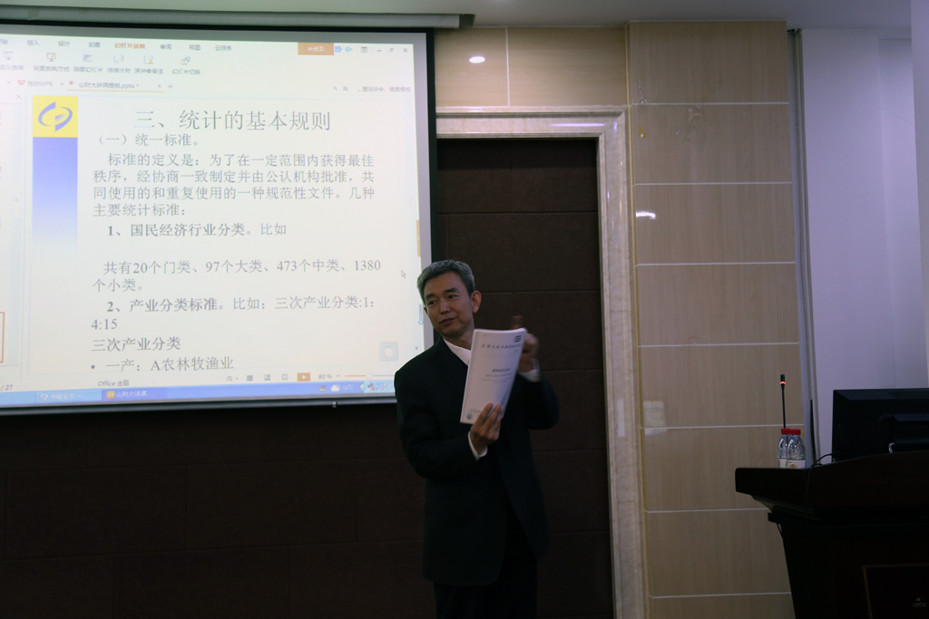 3月28日下午,为落实天美传媒 与山东省统计局签署的战略合作协议,共建高水平“产学研”合作平台,统计学院“百脉大讲坛”在燕山校区4号教学楼6楼报告厅开讲,主讲人为山东省统计局姜西海调研员。讲座由执行院长李国锋主持,学院党委书记郑磊、副院长田金方和全体研究生聆听了讲座。