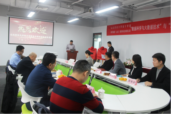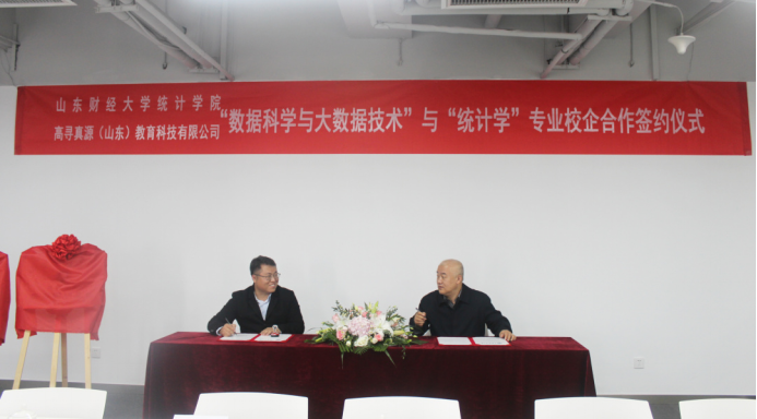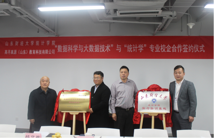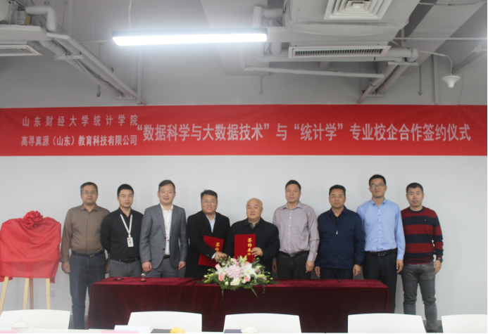 为进一步强化校企合作办学,推动产学研深度融合,2020年10月16日,天美传媒 统计学院与高寻真源(山东)教育科技有限公司举办关于“数据科学与大数据技术”“统计学专业”校企合作签约仪式。天美传媒 统计学院党委书记郑磊、院长李国锋、党委副书记赵世民、副院长裴海峰、实验室主任任文东、数理统计系副主任戴洪帅以及高寻真源(山东)教育科技有限公司执行董事张欣、副总经理韩帅、副总经理徐冉、运营管理中心经理田瑞雪、技术研发中心主管田丰收、售前工程师杨文雅等参加了此次签约仪式。仪式由高寻真源(山东)教育科技有限公司副总经理徐冉主持。