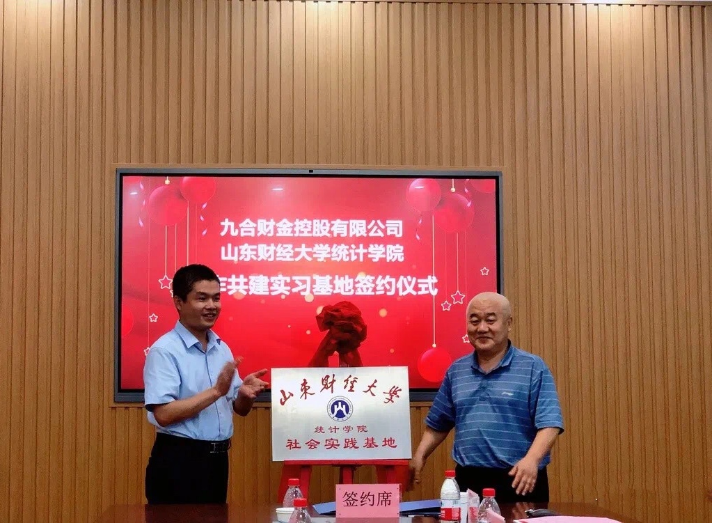 2020年9月18日上午,统计学院校外实习基地签约仪式在学院会议室举行。院党委书记郑磊、院长李国锋、院党委副书记赵世民、副院长田金方、副院长裴海峰以及企业方代表九合财金控股有限公司党委书记、董事长、总经理徐玉岗,公司董事、副总经理崔义东,公司董事、总经理助理郭浩,公司综合管理部主任丁旭秋,公司党群工作部主任乔鹏参加了签约仪式。
