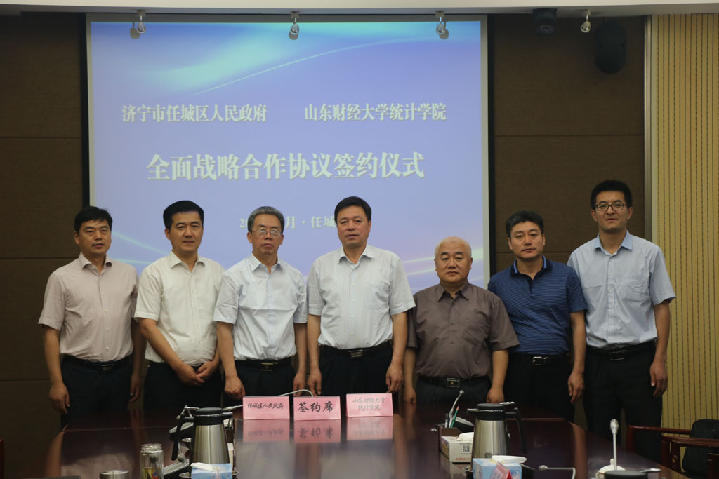 5月23日,统计学院党委书记郑磊、执行院长李国锋、副院长裴海峰、校合作发展处副处长邵伟然一行4人赴济宁市任城区开展学习交流,签署战略合作协议。济宁市统计局副局长魏中齐、任城区委常委、常务副区长胡钦出席签约仪式,区相关部门负责人及统计局有关人员参加,区统计局党组书记、局长周超主持签约仪式。