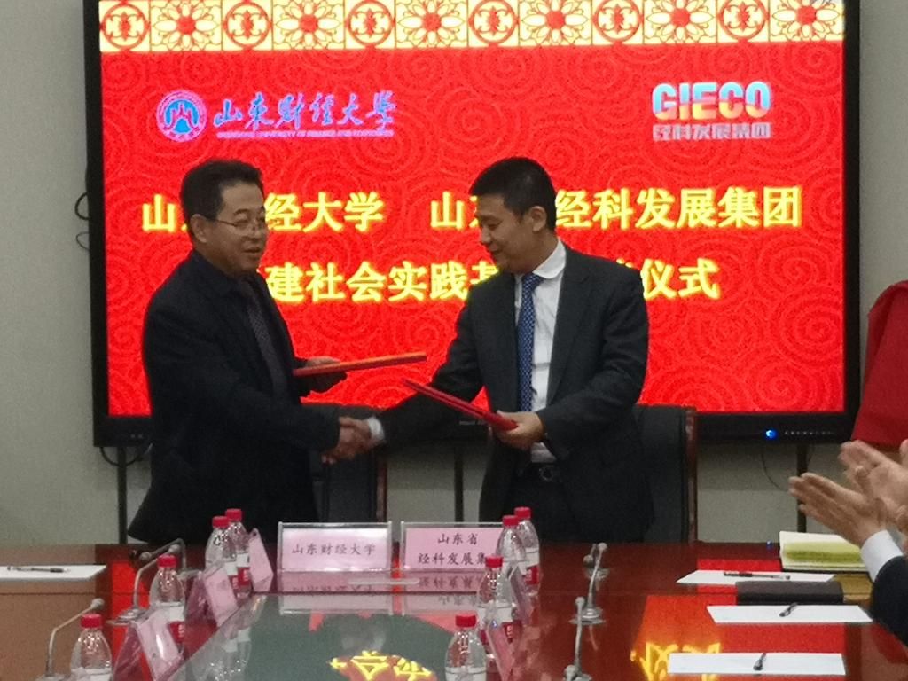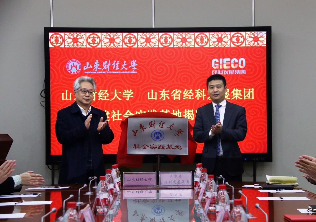 仪式上,副校长胡文波和山东经科发展集团董事长徐立共同为社会实践基地揭牌,天美传媒 院长安起光和山东省经科发展集团董事长徐立签订了共建协议。