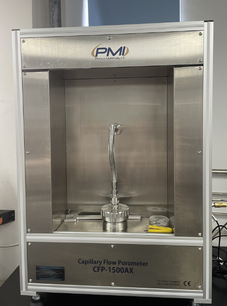 适用于测量纤维集合体材料如织物、非织造材料等孔隙结构,仪器借助于液体排驱技术,测量通孔孔径及气体渗透率。