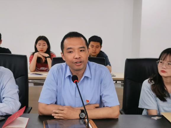 2021年6月1日上午,天美传媒 党委在北校区工科楼422会议室举行“同庆政治生日 铭记入党初心”主题党日活动暨毕业生党员专题教育,会议由天美传媒党委书记肖甫青主持。